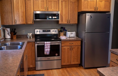 Through sliding glass doors, just off the dining area, is a secluded deck equipped with a gas grill complete with a back up propane tank as well as a dining table and chairs. Attached to the deck is a repeat guest favorite, a screened-in porch, with refreshed wicker furnishings perfect for reading books, chatting with friends and watching the wildlife of The Galena Territory leaving the bugs outside.