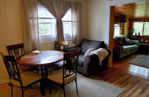 Welcome to lovely Albany, NH. This property features two cozy bedrooms - one with a king bed & TV and the other with a queen-on-queen bunk bed. The bathroom is stocked with clean towels and all necessary shower amenities. The living room boasts several windows to enjoy the property’s nature views, a built-in desk, two large sofas, and a TV.