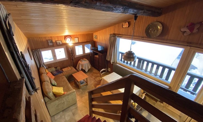 Double mezzanine apartment, sleeps 5, 50 m² with balcony, located on the 3rd floor of the "Le Cohennoz" residence. Northeast exposure. Above the Cernix shops and at the foot of the slopes.