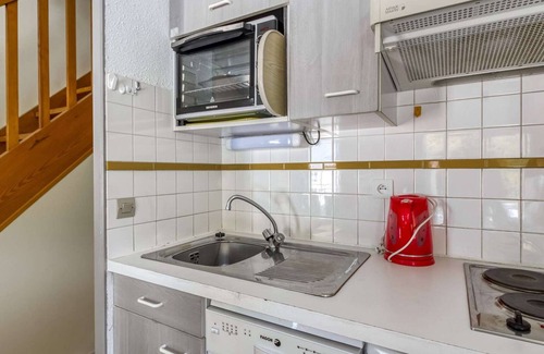 3 room cabin duplex apartment of 43 m² for 8 people, on the 4th floor with lift. Exposition NORD, with a balcony, view on the village and the mountain. Living room with sofa bed, TV, bedroom with double bed, bathroom with bathtub, washing machine and tumble dryer. Separate WC. Kitchenette: dishwasher, fridge, microwave, 2 electric cooking rings. On the 1st floor: a room with a bed in 140 and a corner night with 2 bunk beds in 90. Bathroom with toilet. Private ski locker on the 1st floor. Outside carpark above the residence.