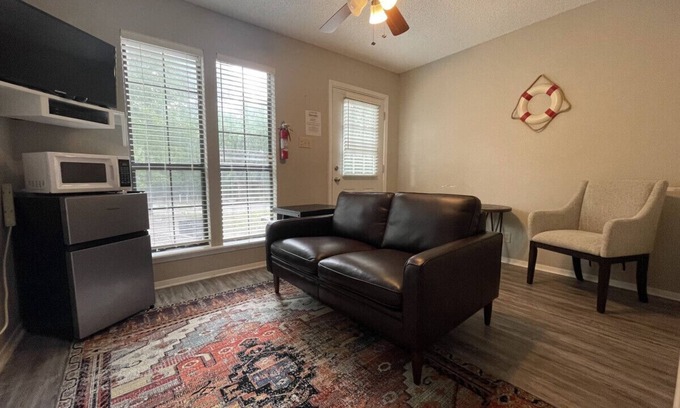 Welcome to our quaint one-bedroom cabin, perfect for solo travelers or couples in need of a comfortable and convenient place to stay.