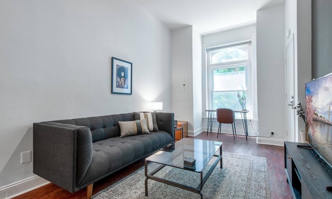 This apartment for rent in Dupont Circle invites you to explore DC's most beautiful neighborhood. Old-World townhouses blend harmoniously with condos and modern apartments, only 13 minutes away from Union Station by car and train. Passing through the inner ring of Dupont Circle is Massachusetts Avenue, known for its grand mansions and embassies. Widely popular for its bohemian and alternative scene, Dupont Circle maintains all the conveniences of urban living and a mix of popular galleries and fine dining. A bicycle will come in hand when exploring this bike- and pedestrian-friendly neighborhood with numerous green spaces for a quiet afternoon.