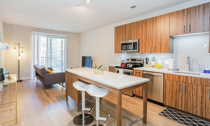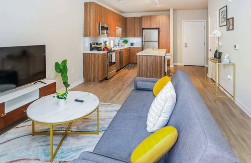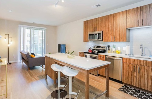 Unwind in the stylish 1-bedroom home in central Fairfax, with grocery store and a café on-site and numerous shops and eateries within walking distance.