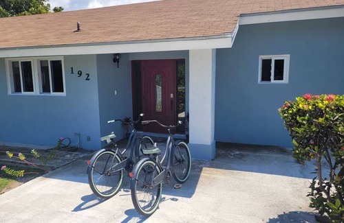 Beautiful home in a quiet neighborhood. 10 minutes walk from the nearest local beach (5 minutes bike ride - 2 bikes and a beach wagon included in rental). 10 minutes drive from airport. 15 minutes drive to Port Lucaya. Mini wet bar with wine fridge. Fully fenced. Security cameras. Keyless entry.