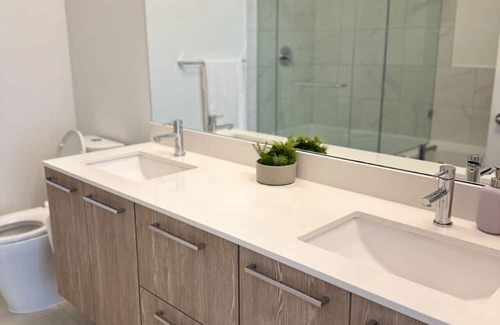Discover our modern townhouse in North Vancouver, near Deep Cove. With over 2053 sq ft, it comfortably accommodates up to 8 guests. Nestled in a quiet and safe community, our North Vancouver townhouse offers easy access to nearby trails, a golf course, and waterfront parks. Families will love the on-site playground. Ideal for a peaceful getaway in North Vancouver.