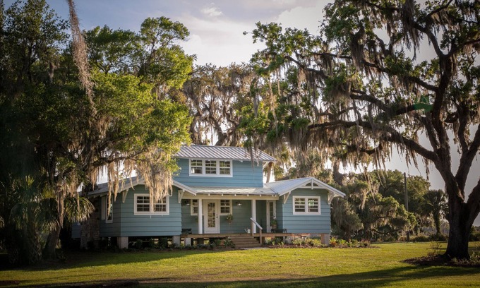 Stay at the Little Siesta at the Triangle Ranch. Enjoy nature and old Florida while sitting on the screened back porch. This freshly remodeled 1,100 sq ft home was built in 1936 on Siesta Key and moved to Triangle Ranch in 2021. The home boasts cypress walls and ceilings, vintage furniture, and a kitchen that has all your cooking essentials including a stove and espresso machine. With two bedrooms and two baths, The Little Siesta is the perfect destination for a quiet and restful retreat.