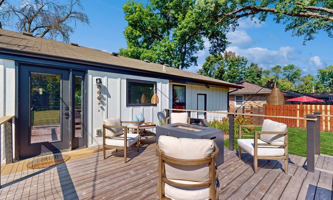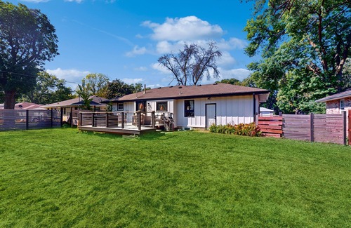 Cozy fenced in home with central AC, Fire table, WiFi, and large deck | House in Minneapolis
