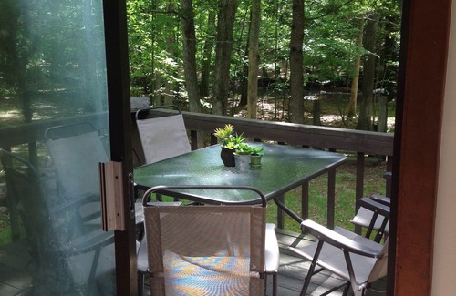 If you have a romantic side, come to stay at our cabin and enjoy being surrounded by nature, the calming sounds and views of the rolling water, the birds, crickets, far away wind chimes, occasional forest rain, and frogs. Unwind in the bubbling Jacuzzi. At night gaze at the amazing here stars in these deep clear mountain skies. Watch the various wildlife when it decides to visit. Curious deer, funny turkeys, various birds and living beings are passing by at times. We have seen all sorts of wildlife here, even bears and a black mink. They are locals here and they don't bother human locals. Just don't bother them!