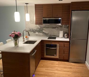 Cozy Garden Apt in Williamsburg NYC Townhouse is located in Brooklyn, just 3.1 miles from Bloomingdales and 3.4 miles from Brooklyn Bridge. During your time at this recently renovated apartment, which dates back to 19th century, you'll have access to free Wifi. Grand Central Station is 4.5 miles away and United Nations New York is 4.5 miles from the apartment. The air-conditioned apartment consists of 2 bedrooms, a living room, a fully equipped kitchen with a dishwasher and a coffee machine, and 1 bathroom with a bath and a hair dryer. Towels and bed linen are offered in the apartment. This apartment is allergy-free and non-smoking. NYU – New York University is 3.5 miles from the apartment, while Barclays Center is 3.6 miles from the property. LaGuardia Airport is 7.5 miles away.
