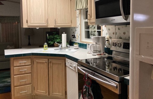 Lovely home away from home, comfy and cozy. Enjoy coffee on the front deck or iced tea by the pool and hot tub. Well kept mobile home in a community setting, close to shopping and restaurants. Located between Tampa and Orlando, with lots of activities and entertainment. Or just relax and enjoy the quiet setting. Minimum 30 day rental.