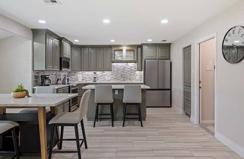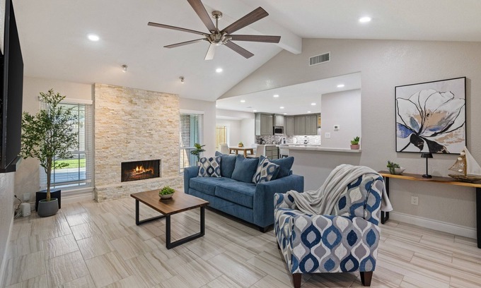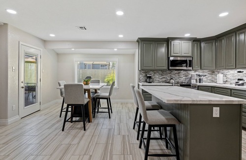 Welcome to our beautifully remodeled 3-bedroom home. Our home features a spacious living room with vaulted ceilings and a wood-burning fireplace, a private backyard with a patio equipped with outdoor tables and chairs, and modern amenities including a washer and dryer, smart TV, and strong Wi-Fi. Whether you are in the area for leisure to work make our house your home away from home!