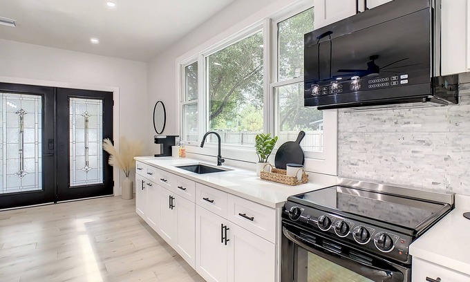 There is a kitchen available for your use. It includes brand new appliances as well as all the necessities you may need for them. The refrigerator will always be stocked with fresh and cold water bottles for our guests. When you walk in you will also find a welcome basket with snacks. In the cabinets you will find everything you will need for dining and all the baking and cooking utensils you could possibly need.
