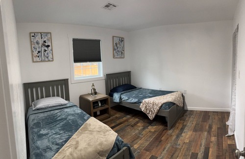 We have two twin size beds in each room with a pullout self inflating bed to place anywhere you’d like.