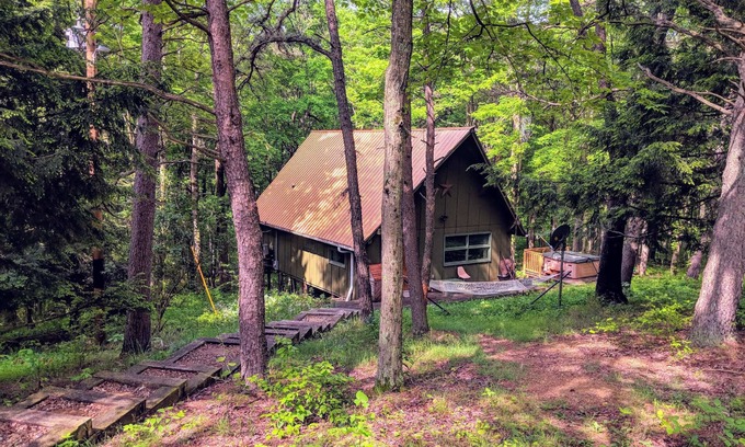 Cozy Getaway Nestled on a Hillside in the Heart of Hocking Hills! is located in Rockbridge. Cozy Getaway Nestled on a Hillside in the Heart of Hocking Hills! provides accommodation, featuring Hot Tub, TV, Sports/Activities, among other amenities. This House features Hot Tub, TV, Sports/Activities, to make your stay a comfortable one.
