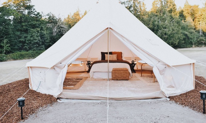 Cozy glamping tent on Marrowstone Island nestled in a breathtaking apple orchard | RV Rental in Marrowstone