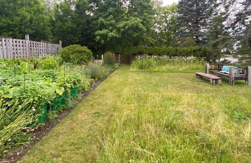 The garden is separated for use between Big House and Minnow. You have a lovely outdoor space for relaxing with your morning coffee or afternoon wine. The outdoor seating overlooks an organic vegetable and flower garden which offers something to nibble on through the growing season.