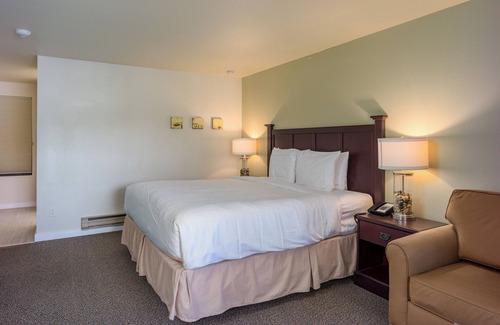 The HARBORSIDE KING is located in the Harborside Buildings right on the waterfront, offering a peaceful retreat overlooking the serene waters of Cascade Bay with breathtaking views of the historic Moran Mansion. This inviting room features a comfortable king bed, a private bathroom, and convenient in-room amenities including a small fridge, microwave, and coffee maker, allowing you to enjoy light meals and morning coffee during your stay. Step out onto your private balcony to soak in the peaceful island surroundings while listening to the gentle sounds of the bay. Perfect for a relaxing getaway for two, this room offers a cozy and comfortable space to unwind after a day of exploring Orcas Island, strolling the beach, or enjoying the nearby Moran State Park. Ideal for couples seeking a quiet island retreat with easy access to waterfront views, local dining, and outdoor adventure.