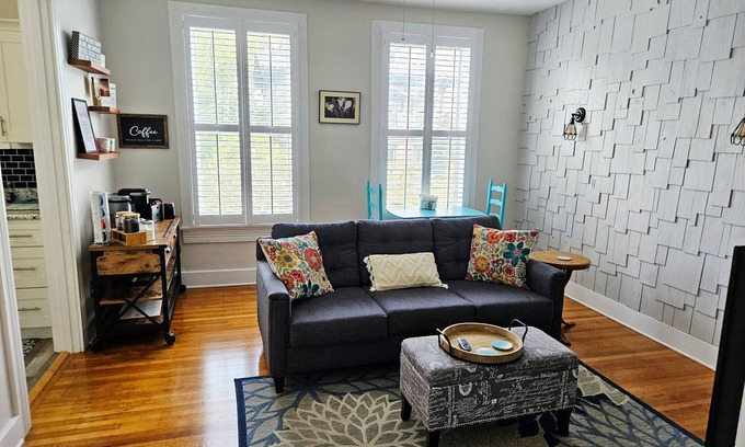 Welcome to our cozy hide away in the heart of New Albany. Just steps away from downtown’s best restaurants, coffee shops, and boutiques. Enjoy natural light, a peaceful setting, farmers market on Saturdays, and easy access to the Ohio River Greenway for walking or biking. A perfect retreat for couples, solo travelers, or business stays close to everything, yet quiet and relaxing. Enjoy the charm of a quiet neighborhood with quick access to everything you need.
