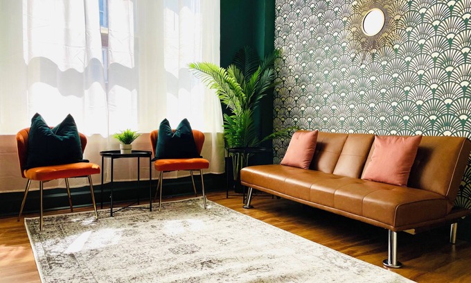 You will be right downtown when you stay at this 2 bedroom apartment located inside a historic building! Please note that the building and apartment are historic (read: older) but it has been decorated and painted.