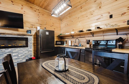 This retreat is equipped with modern amenities, including two 50-inch smart TVs and high-speed internet access, ensuring you stay connected during your stay. Experience warmth and ambiance with electric fireplaces in both the living area and bedroom. And for the ultimate relaxation, unwind in the brand-new hot tub. No steep or winding roads to navigate means you can focus on enjoying your perfect getaway.
