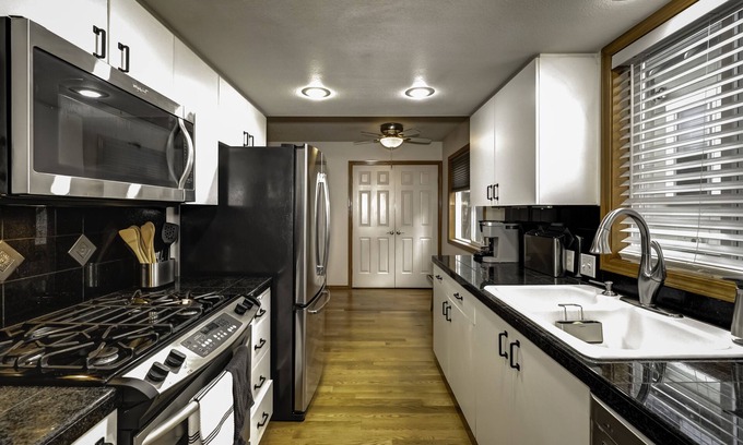 Tucked away in a quiet neighborhood, this property will give you the respite you need while using it as a home base in the city of Portland. Though quiet, the property location is nearby the Hawthorne and Division Districts known for their food and drink, entertainment, shopping, and eclectic feel that Portland is known for. Mt. Tabor is also nearby. The park showcases a piece of the Pacific North West nature scene while being in close proximity. And with a bit of a longer trip, Portland gives you access to beautiful mountains, lakes, and rivers waiting to be explored. After the events of the day, the property provides comfortable beds and cozy couches to lay on, a fully stocked kitchen to cook and eat your favorite meals, and a TV + sound bar to enjoy. Make this place yours as you spend your days resting in the comfort of your own space.