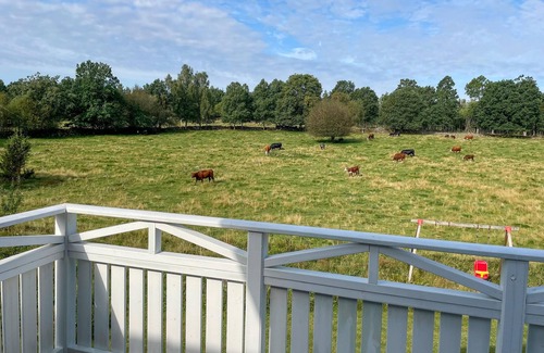 Enjoy a relaxing holiday in your enchanting holiday home, which is located in a rural setting. The charming wooden house blends harmoniously into the natural surroundings and offers a beautiful wooden terrace with comfortable garden furniture, ideal for cosy evenings in a peaceful atmosphere. Leave everyday life behind you while you watch the surrounding landscape from the terrace. Inside the house, you will find a cosy interior with a long dining table and a spacious sofa area that offers plenty of room for family or friends. Whether it's a film night, browsing through a book or socialising with board games, there's something for everyone here. The crackling wood-burning stove provides cosy warmth on cooler days. You can also relax in the in-house sauna.