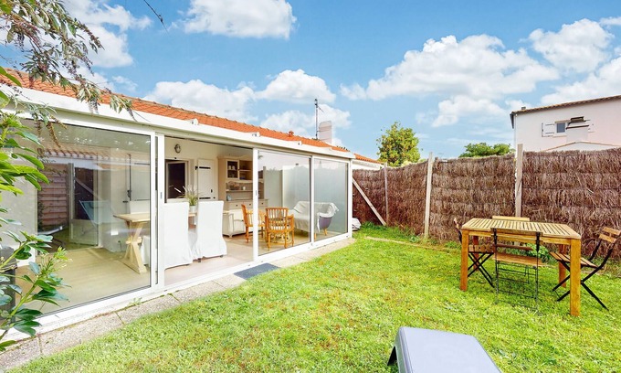 This cosy and bright holiday home on Noirmoutier-en-l'Ile offers you a warm and inviting atmosphere. The stylish furnishings and conservatory create a wonderful retreat for relaxing days. From the living room, you have direct access to the small garden, which is ideal for enjoying the fresh sea air.