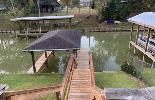 Lake Livingston is known as the "hill country of the East" due to the beautiful trees, rolling hills, and tranquil lake. This is a waterfront property, located in a cove of Lake Livingston. This property is a cozy 750sqft complete with an upstairs loft and 2nd bathroom, downstairs private bedroom, bathroom, and a queen sleeper sofa in the living room. The neighborhood is known to be quiet, friendly, a great place for fishing, and hanging out with family and friends. Each property has a boathouse or pier on their property. Bring your small fishing boat, fishing poles and friends and family and enjoy a relaxing time!!