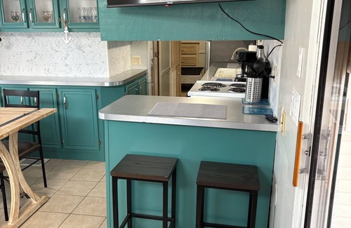 Home has free WIFI & sleeps 4- 6, or 4Adults/2 Kids. No more than 6 people allowed. Park Model is nice & clean with a 1b/-1 1/2b. Master Bedroom has a queen size bed and a Flat screen TV. (2) living areas, (1st) living room has a queen size sofa bed & a 50-inch TV. The (2nd) living room has (2) Recliners a 50-inch TV. Home has a washer & dryer. The kitchen has electric stove and is equipped with dishes, pans, utensils, etc.