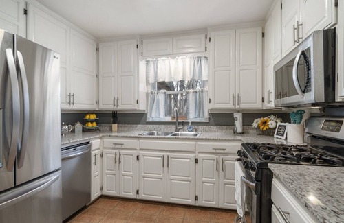Come enjoy this spacious home in the heart of Tulsa! Our back porch is a guest favourite, with plenty of sitting space and a private and cozy atmosphere. Inside you can enjoy our large smart T.V. with comfortable couches, and big windows that let in nice natural light during the day. Our kitchen is stocked with all the cooking utensils you will need, a coffee machine and plenty of spices!