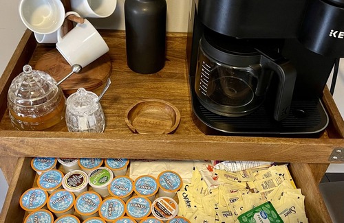 Kitchen, Laundry Room and Bathrooms are stocked. Kitchen is stocked for cooking and dining. Bathtub/shower upstairs. Shower in basement has detachable handle (good for showering pets and toddlers). Plush bath towels . Bathrooms are stocked with toiletries, Laundry room has plenty of supplies.