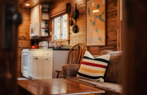 ✔ Fish House cabin has a curated mercantile store and lending library of books and board games.