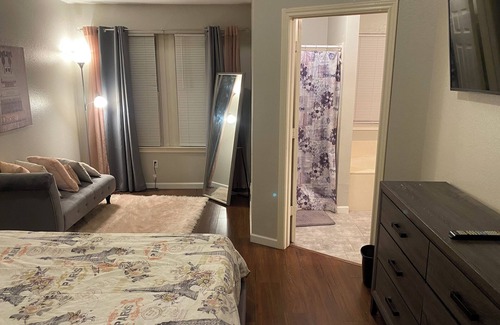 Cozy in Mesquite is located in Mesquite. Cozy in Mesquite provides accommodation, featuring Parking, Bedding/Linens, Fireplace/Heating, among other amenities. This House features Parking, Bedding/Linens, Fireplace/Heating, to make your stay a comfortable one.