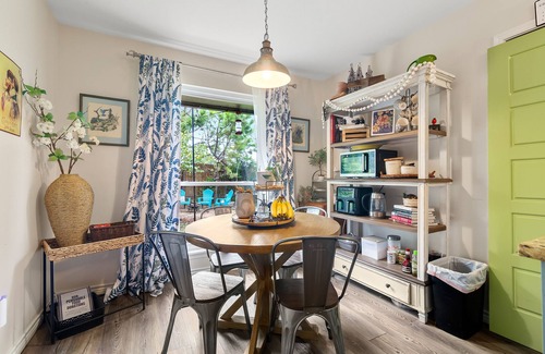 Bring the whole family to this peaceful cottage in the heart of Jenks, where comfort and togetherness come first. Each room is designed to feel inviting and cozy, with soft linens and beds that make it easy to relax. The home includes a spacious King bedroom, a comfy Queen, and a playful bunk bed with a slide the kids will love.