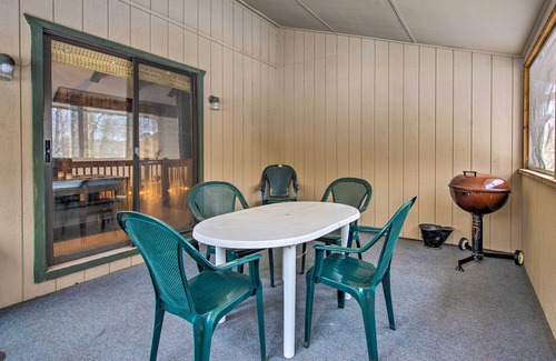 Whether you’re looking for a peaceful Ponoco getaway or a fun-filled retreat, you’ll love having this Lake Ariel vacation rental as your home base! Located in The Hideout, this 3-bedroom, 2-bath home has everything needed for an unforgettable mountain trip — including a game room, 6 Smart TVs, a fully equipped kitchen, and access to community amenities that offer endless possibilities for recreation! After a day of adventure, enjoy dinner in the sunroom surrounded by stunning forest views.