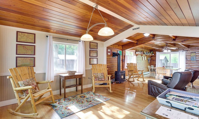 HOLIDAY HIDEOUT: Smart TV, gas fireplace, reclining chairs, dining table, books, board games, ceiling fans, screened-in 3-season porch