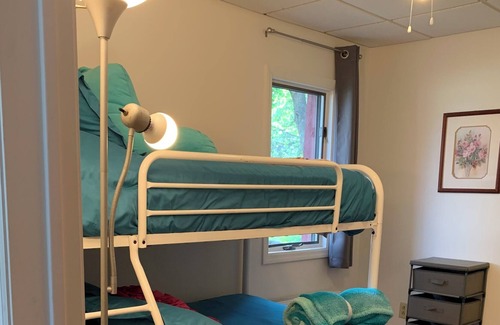 Gorgeous lake views from a spacious private shaded porch with a gas grill, large table, games and comfortable seating, a large private access to the lake for great fishing, kayaking, row boating and swimming are just some of the things you’ll find here. The kitchen is fully stocked with a new stove, refrigerator, waffle maker, rice cooker, coffee makers, everything you’ll need for cooking and enjoying your meals. Two bedrooms, one has a queen size bed, the other room has a bunk bed with a full size mattress on the bottom and a single mattress on top. Twelve minutes from the historic site of Woodstock now known as Bethel Woods where you can enjoy concerts, festivals, food and an awesome museum of the 1969 Woodstock festival. Short rides to Narrowsburg, Callicoon, Jeffersonville, all with great restaurants and small town vibes and the Delaware River. Many hiking trails are also available in the area.