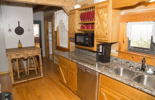 The cabin features a master bedroom with queen bed that includes a master bathroom. A second full bathroom is on the main. The open beam great room features all that is log cabin living with a small kitchen and great family dining area. A big screen Smart TV is in the great room in case you just have to catch that ballgame or NASCAR race. The loft bedroom is very spacious and includes a queen bed along with a futon in case you need the extra room. The sofa area in the loft also is the best view of Table Rock Lake in the house...breath taking. The home includes a SEPARATE outside entrance basement with access only from the rear of the home under the covered deck; the staircase is outside. The basement has two more bedrooms that each include a queen bed. A third bathroom is included in the basement. The washer and dryer are located on the main level in the utility area. All four bedrooms have great quality mattresses with some awesome high thread count sheets. You will sleep like a baby. The basement also has a family room with big screen TV and a couch you could bed down some kids if needed. The back deck is so relaxing and has a million dollar view. In the late day and evening, you can watch the famous Branson Belle motor around the lake. If that's not enough and you enjoy outdoor cooking the cabin comes equipped with a stainless steel gas grill. Still not enough, enjoy the outdoors and the crisp fall, winter or spring evening with the unique fire pit. Lots of families enjoy a late evening fire with family fellowship and the roasting of s'mores or good ole hot dogs. As night falls on Saturday evening during the summer cast your eyes toward the Chateau on the Lake. A free fireworks display awaits. Check out the décor and look over the book left in the cabin. We have listed many local places that we have enjoyed doing business with that have quality products. If that is not enough.....we have 26 acres that joins the cabin property for your hiking and biking pleasure. Just look for the signs that say, "This property managed by Ozark Country Cabins". Enjoy the natural beauty of the Ozark Hills with views of Table Rock Lake and you are sure to encounter a variety of wildlife.
