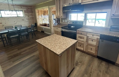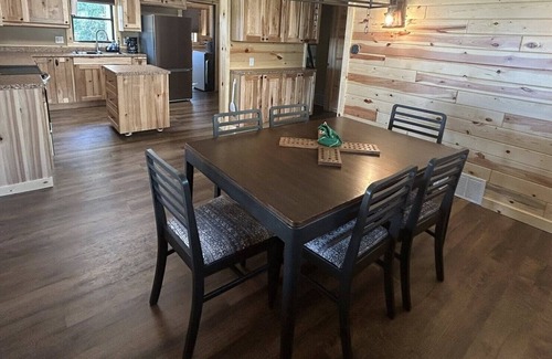 Step outside to a spacious patio with a table, umbrella, lounger swing, and grill—ideal for cooking up your catch or enjoying a sunset dinner. Whether you're fishing off the dock, boating with ease using the power lift, or exploring nearby bars, trails, golf courses, and the casino, this cabin offers everything you need to unwind and make lasting memories.