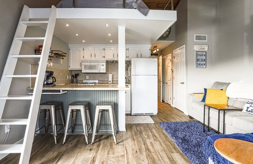 This is a top floor condo (no elevator) that has a vaulted ceiling which has allowed us to build a Queen sleeping loft. Sit on the deck and enjoy the amazing view of the water or relax by the pool on a hot summer day. Take the kids to Big Surf Waterpark just minutes away, play miniature golf, ride the go-carts or check out the malted monkey.