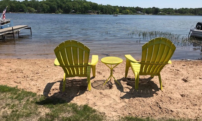 Enjoy sunrises from the deck of our quaint, little 2 bedroom, 1 bathroom cottage on Big Crooked Lake in Kent County, Michigan. Big Crooked Lake is a 152 acre, all sports, private lake, with great fishing for blue gill, perch, bass, pike and walleye. Private sandy beach & shallow swimming area on the property. There is also a no-wake cove, accessible by boat, where people anchor their boats to swim and socialize. The cottage is 900 sq. ft. and it will sleep 4 comfortably, one bedroom has a queen size bed, the other has two twin beds. Many amenities included such as a furnished kitchen, including basic food staples, dishes, coffee maker, also hair dryer, linens, iron & ironing board, bedding, towels & beach towels. We are also providing a grill, patio furniture, lawn/beach chairs, fire pit & fire wood and a sandy beach and dock! Fishing poles are available, but we recommend bringing your own favorite gear. We provide a 12' rowboat for our guests, which works great for fishing and paddling around the lake, it also has an electric motor with two lithium batteries. There is a private boat launch available if you want to bring your own boat, which you can dock at our dock and park your trailer at the cottage. Please be sure that any watercraft brought in from other lakes is clean and free of invasive species. All boaters must operate within the State of Michigan Boating Laws and BCL Association rules.There is a dock available on the property for fishing/swimming from and docking one boat.