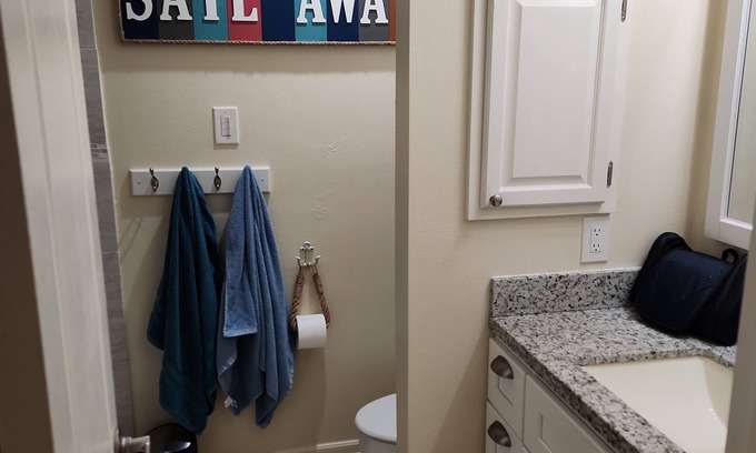 Your cozy getaway awaits in Kemah at this brilliant condo. This adorable property features 1 bedroom with a king bed, a living room with a sofa bed, and an office with a futon. With amenities like AC, WiFi, and a washing machine, guests will have a pleasant stay. It's easy to see why you'll be able to unwind at our place.