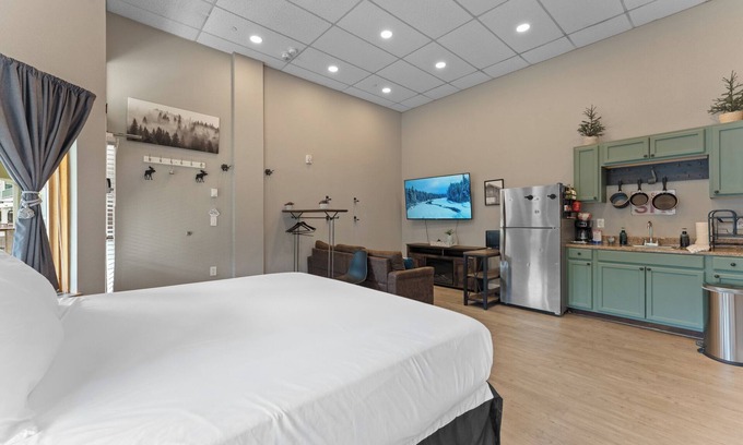 This beautifully appointed lakeside studio comfortably sleeps up to 4 guests with a plush king bed and a queen sleeper sofa, making it ideal for couples, small families, or friends looking to enjoy everything Keystone has to offer.
