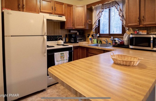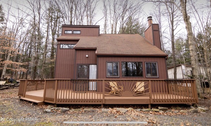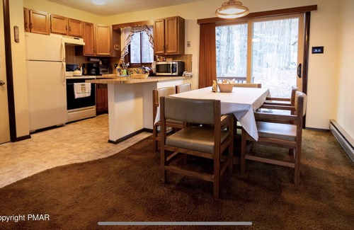 Welcome to our cozy, family-friendly, 3 bedroom, 1.5 bathroom home nestled in The Hideout, Lake Ariel. Immersed in the woods, this Lake Ariel home boasts a deck with gas and charcoal grill, fully equipped kitchen, and access to shared amenities such as lakes, beaches, pools, a skill hill, golf course and so much more. Where your relaxing in front of the fireplace or roasting marshmallows on the fire-pit, this home has plenty of space to spread out.