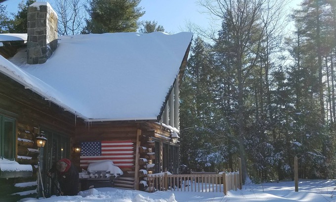 Romantic couple looking for a relaxing and private space where you can escape to the "cabin" and let the dogs run free in the spacious fenced-in yard, and have an entire house to yourself in the woods near Mt. Monadnock? Enjoy time away in a unique and actual log home where you can sit back with a beer or glass of wine on the deck, relax in the swing, grill some food, play games at the dining table, watch a movie, and relax in front of the huge fireplace. Then hop into the jetted tub upstairs and climb into your King-size Tempurpedic bed for a restful night's sleep. In the morning, you'll be a short drive to hiking, antique shops, and several local eateries. The night sky is amazing without all the city lights; do some stargazing! Great walking areas in the neighborhood. The views from the living room and the loft outside of the master bedroom are amazing with the full-height windows across the entire facade of the home.