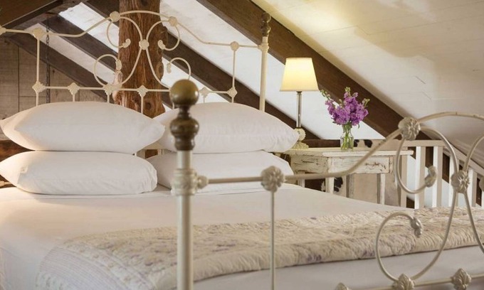 The Cozy Loft Suite on our ranch in Texas, has a large fireplace in the living room (wood furnished by BlissWood), plus a private sitting area furnished with wicker furniture with view of outdoor pool and Centuries-old live oak trees. It also features a full kitchen (fully stocked with pots/pans, dishes, silverware, glassware, coffeemaker, microwave, toaster, oven/stove, refrigerator) and large antique farmhouse table in dining area. A cozy, small upstairs loft with a queen bed and a sleeper couch in the living room.