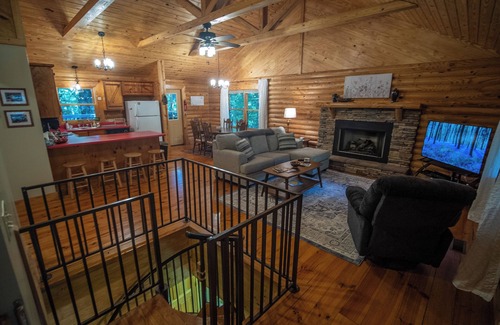 With high-speed Wifi and two Roku-enabled TVs, you can easily stream your favorite shows and movies during downtime. The cabin has plenty of parking, including a full loop driveway with space for 4-5 cars and space for boat parking.