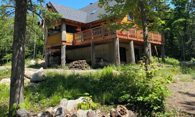 Glenloggin is a peaceful lakefront log cabin in Morin-Heights, only a one hour drive from Montreal. The cabin sits on the north shore of Lac Belanger, just behind the Morin Heights ski hill. Whether you'd like to ski, snowshoe, canoe, trek, cycle, mountain bike, or just chill out by a camp fire, and stargaze to the sounds of loons and beavers, Glenloggin cabin has something for everyone. The cabin was hand-carved from huge pine trees, but it also has high speed internet for today's needs. Your hosts live up the road, ready to help any way they can.