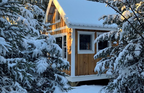 The cabin sleeps 4, two in a cozy bedroom with a queen bed and two more in a loft with twin beds. In the winter, guests can curl up in front of the wood stove and in the summer, ample windows makes the cabin breezy and fresh. BowHaven features a kitchenette with induction burner, microwave, electric kettle, coffee maker, and fridge. From May through November, the cabin has running water for dish and hand washing from a rain collection system. Drinking water is provided year round.