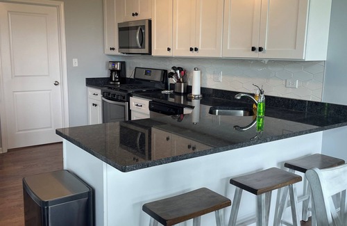 New Construction!!! Cozy 1700 SF, 2 Bedroom plus office, 2.5 Bathrooms. Large Master Bedroom with King Bed and Attached Bathroom with Large Shower and Double Sinks. Secondary Bedroom has Queen Bed and large Walk In Closet. Both Bedrooms have linens and Smart TVs for your streaming enjoyment. Large Kitchen with all New SS Appliances, stocked kitchen with plates, glasses, small appliances and utensils for your home away from home. Spacious Living area with large leather sectional and a beautiful wall of windows. Home will offer one parking spot in the garage for your use.